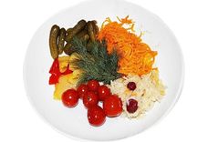 270/15 г • маринованные томаты, соленые огурцы, квашеная капуста, маринованный перец, пряная морковь, клюква, зелень