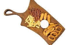 325/50 г • колбаски копченые, картофель фри, луковые кольца, сырные палочки, чипсы, сметанно-чесночный соус